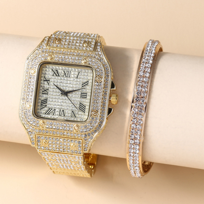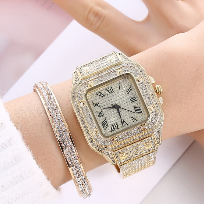 Ceasul și brățara întoarce orice privire. Fabricate din oțel inoxidabil și placate cu aur de 24 Karate aplică o nuanță sclipitoare de culoare aurie ce nu se înegrește cu timpul.